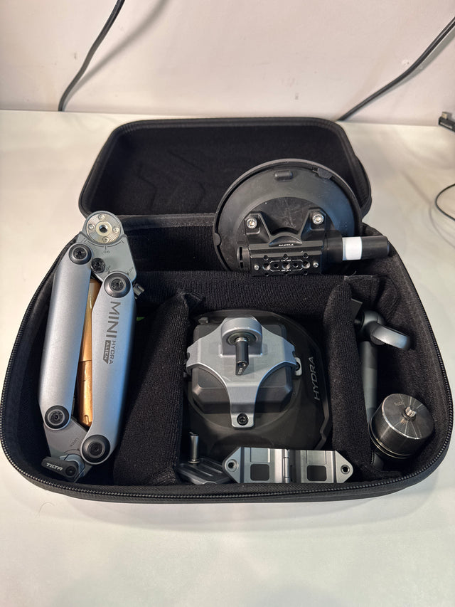 Excellent condition. Includes Hydrologic arm, manual suction cup, electronic suction cup, magic arm, Osmo Pocket mount, counter weight & carrying case.