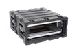 SKB's 3RR Series Removable Shock Rack Transport cases are available in 8 sizes: 3U, 4U, 5U, 6U, 7U, 9U, 11U and 14U. These Shock Racks are lightweight, shockproof, watertight, dustproof, heat and chemical resistant, perfect for protecting and transporting your sensitive electronic equipment.Molded of LMDP Linear Medium Density Polyethylene plastic that meets or exceeds MIL-STD 810G standards, these Shock Racks also include 8 elastomeric shock absorbers which allow for a standard payload range of 40 to 150 lbs (optional extended payload range of 160 to 300 lbs can be accommodated as a special order option). The 20" 3RR Series Removable Racks are 20" deep from rail to rail with a standard 19" rack width per ANSI/EIA-310-C specification and feature square-hole rack rails to accommodate either #10-32 US standard or 6mm International standard cage nuts which are supplied with the cases.The rugged roto-molded shell ensures industry leading strength and impact resistance. The standard commercial off the shelf (COTS) case comes with 2" deep front and rear lids to accommodate rack gear that is longer than 20". Molded-in stacking ribs and lugs are designed to stack with all SKB 3RR and 3RS cases, as well as competitive manufacturer cases, and feature black powder coated stainless steel hardware that is recessed for protection and 4 comfort grip spring loaded lift handles which allow for easy movement. An automatic pressure relief valve is another standard feature along with gasket sealed lids that include convenient lid hangers to store your lids when your equipment is in operation. Coupling straps are included for securing the racks together when stacked.The interior of the case features a removable rack with a patent pending "positive lock" latching system that slides open like a file drawer, allowing full access to racked equipment. The interior rack is also completely removable allowing complete frame access for bench integration.Available in Black (standard), Desert Tan, and OD Green.