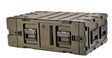 SKB's rugged roto-molded sheel ensures industry leading strength and impact resistance. The standard COTS (commercial off the shelf) case comes with a 2" deep front lid and a 5" deep rear lid to accommodate rack gear that is longer than 30", and edge casters to allow convenient case transport. The compound hinge system and field replacement latches allow the lid to swing out and completely around to lie flat against the main body of the case, or you can go lid-less with an effortless lift motion and reinstalled with the same ease in seconds. Molded-in stacking ribs and lugs are designed to stack with competitive manufacturers cases. Black powder coated stainless steel hardware are recessed for protection as well as 8 comfort grip spring loaded lift handles which allow for easy movement. An automatic pressure relieft valve is another standard feature along with gasketed lids that include convenient lid hangers to store your lids when your equipment is in operation. Coupling straps are included for securing the racks together when stacked.