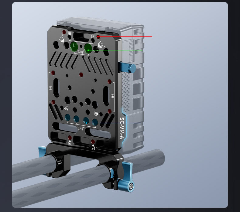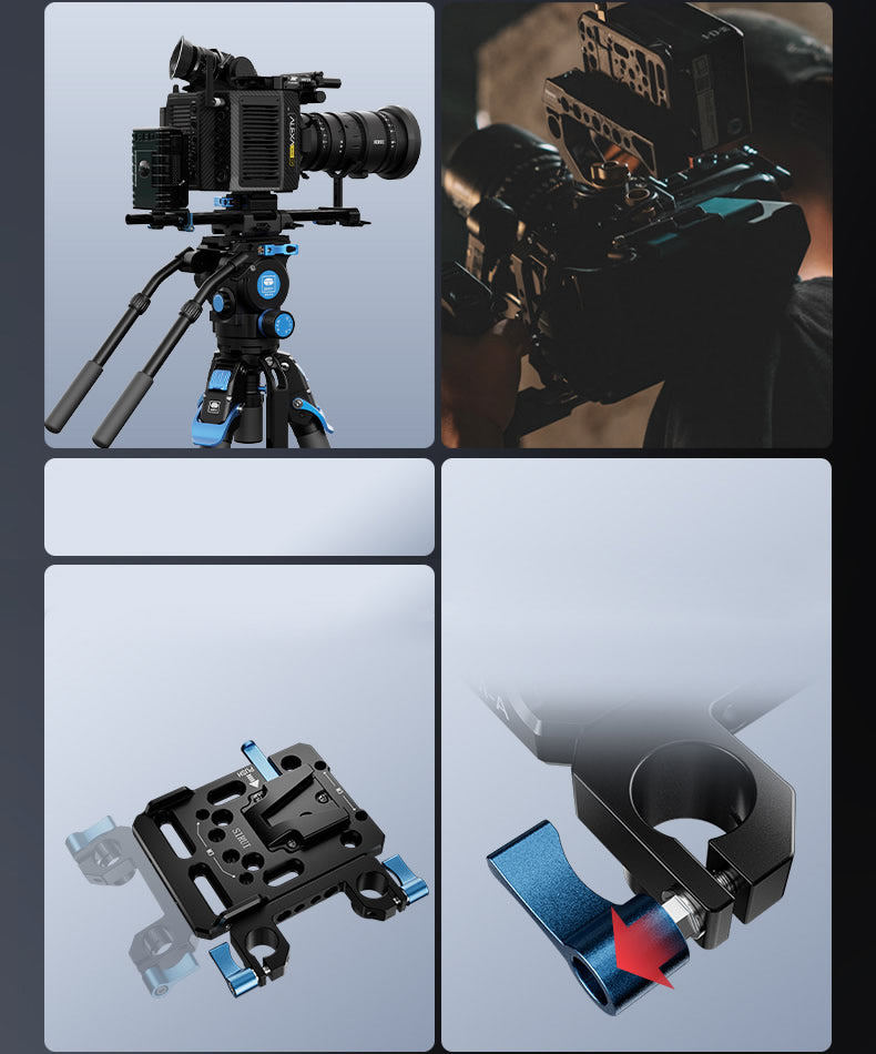 15mm dual rod clamp helps you mount the battery plate onto standard 15mm rods, SIRUI SC-BPS Baseplate Set or others to meet different hooting needs and create high-end productions.