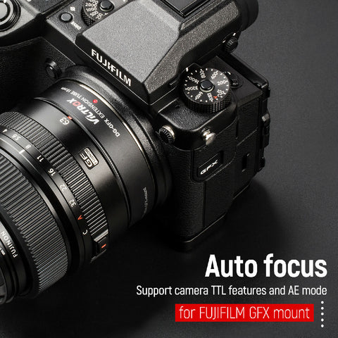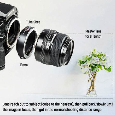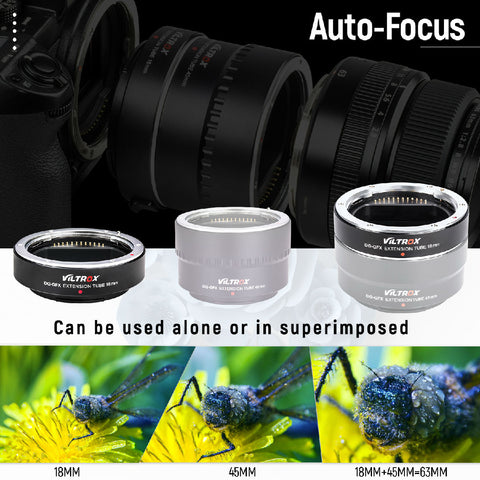 DG GFX 18mm / 45mm Extension tube is for Fuji Camera and GFX mount lenses . It has built-in gold plated electronic contacts , the bayonet is made of metal , and the surface is plated which is durable . Auto focus and can be combined with the camera's automatic zoom perfectly.